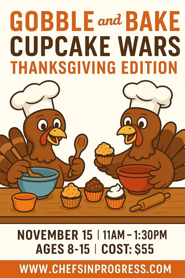 Ready, set, whisk! Young chefs will battle it out to create the most festive, fall-flavored cupcakes—think pumpkin spice, cinnamon swirl, and maple magic—then decorate for the win. We’ll teach pro tips (mise en place, piping, flavor pairing), run a friendly timed round, and crown our Cupcake Champs!