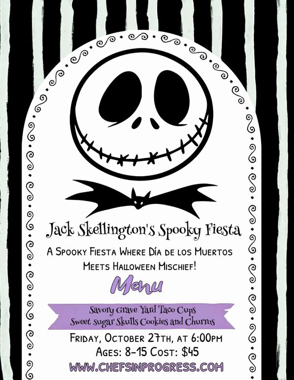 Celebrate a hauntingly fun mashup of Halloween chills and Mexican festivity in this creative, hands-on cooking class. With flavors as bold as the colors of Día de los Muertos and a playful nod to Jack Skellington, this spooky fiesta is a perfect seasonal treat!