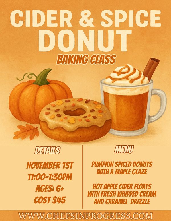 We’ll be making: Pumpkin Spiced Donuts topped with a warm maple glaze Hot Apple Cider Floats crowned with fresh